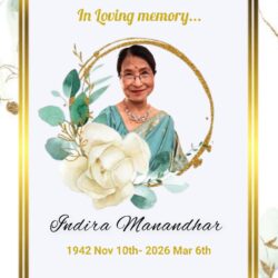Condolences on the passing away of Mrs. Indira Manandhar